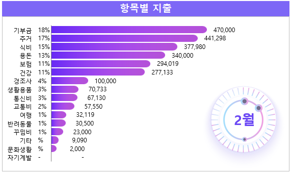 이번 달의 가장 큰 지출 항목은 기부금이다.