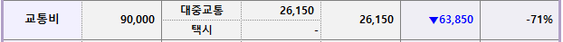 남편의 2월 대중교통비 26,150원이 지출되었다.