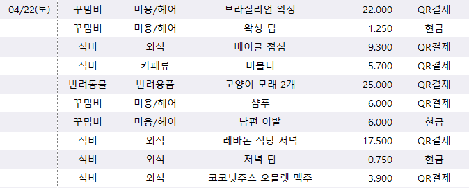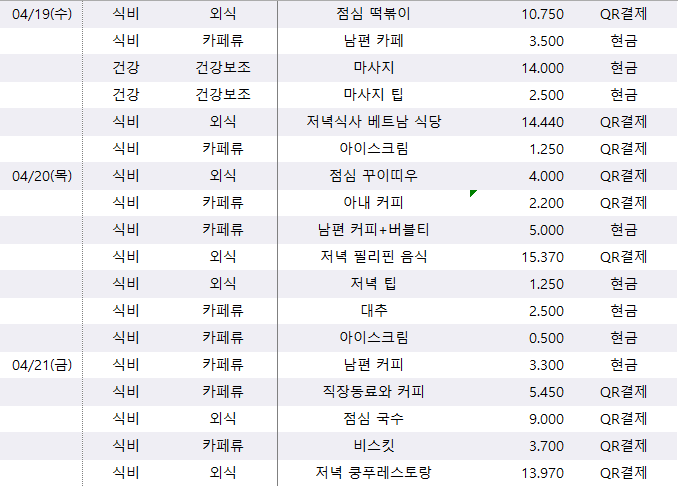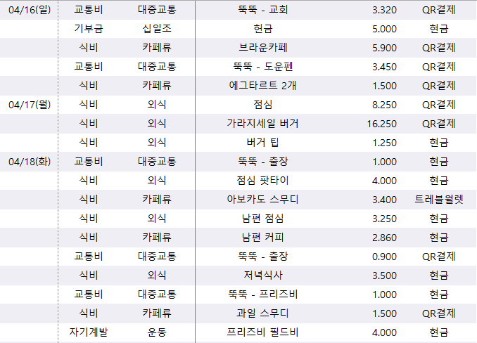 4월 셋째 주 가계부 리뷰