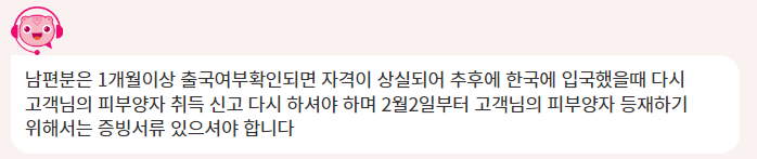 다행히, 한국 돌아온 날인 2월 2일부터 남편을 나의 피부양자로 소급 등재할 수 있다고 했다.
