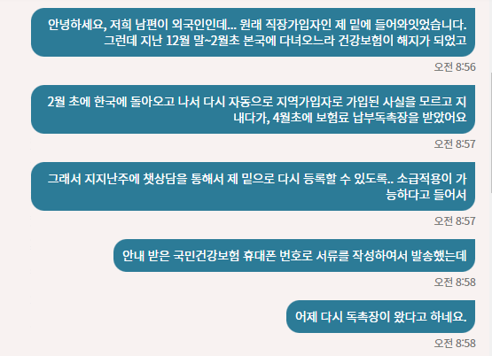 또다시 국민건강보험 채팅 상담을 통해 사실 확인을 해야 했다. (구구절절.....)