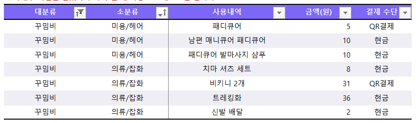 <캄보디아 5월 한 달 꾸밈비 지출>