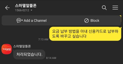 이상, 스마텔 알뜰폰 납부방법 변경 방법이었다.