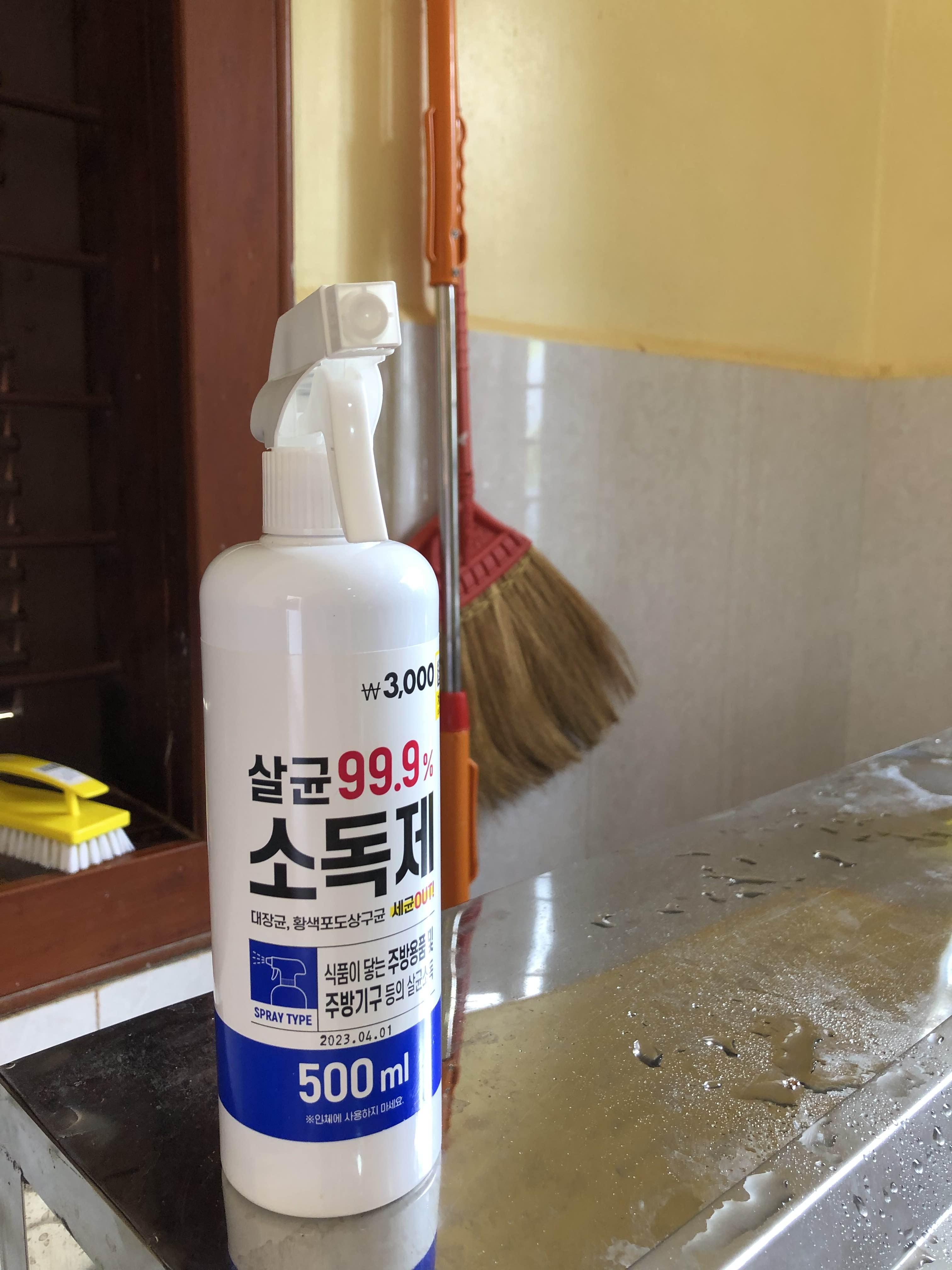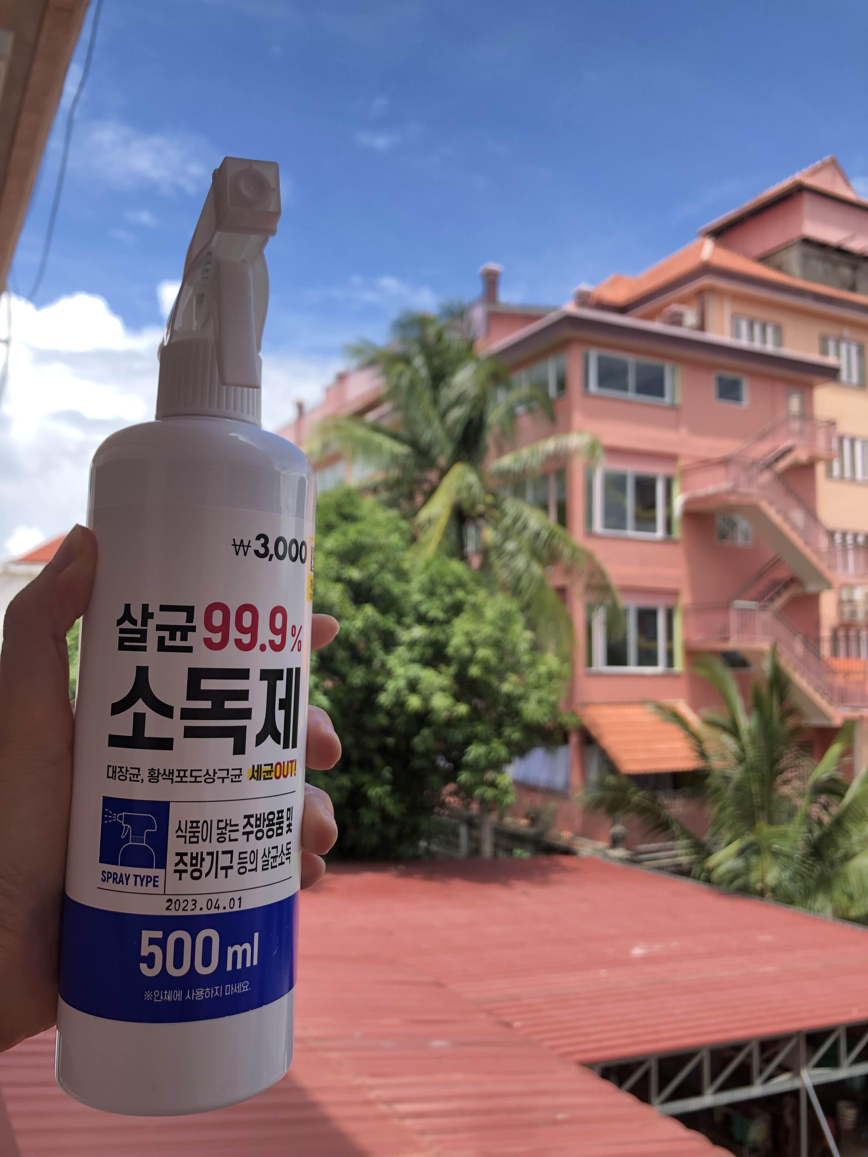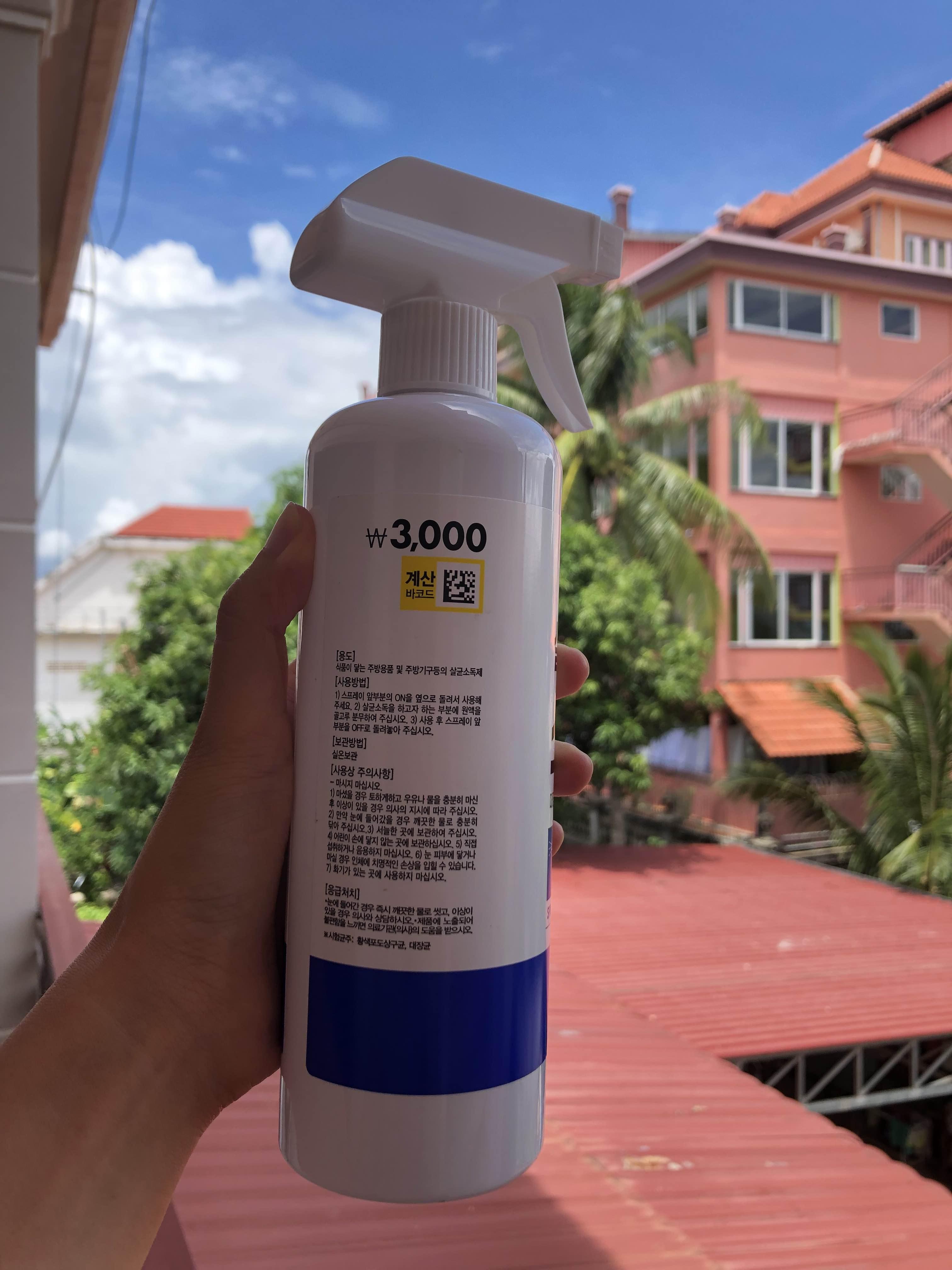 이곳 캄보디아에서는 '위생'의 기준이 한국보다 훨씬 낮은 듯하다. 큰 슈퍼마켓에서도 주방등에서 사용할 수 있는 '소독 스프레이'를 찾기가 굉장히 어려웠다. 그나마 일본계 쇼핑몰인 이온몰에서 논알코올 소독스프레이를 하나 발견해 사긴 했는데, 500ml짜리가 2.9달러 (한화 3,700원)다. 한국 다이소가 그리워지는 순간이다.