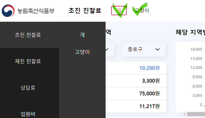 정부에서 각 지역의 동물병원비용을 비교할 수 있도록 하는 웹사이트를 열었다.