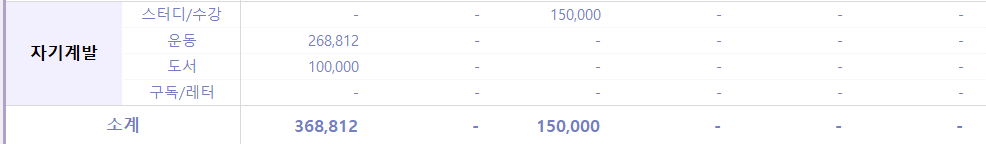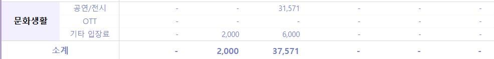 한국에 있는 동안 남편과 함께 영화관을 두 번 갔다. 그 외 자잘하게 친구들과 놀면서 지출한 자전거 대여비용과, 인생 네 컷 지출이 있었다.