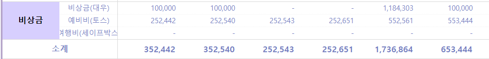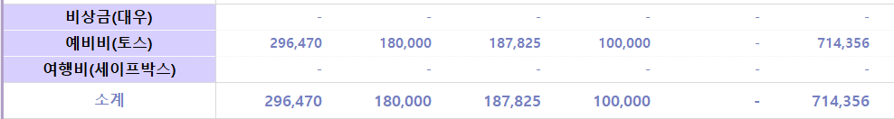 상반기 동안 비상금 지출은 따로 없었다. 여행비는 7월부터 세이프 박스에 모으기 시작했으므로, 상반기에는 딱히 할 말이 없다.