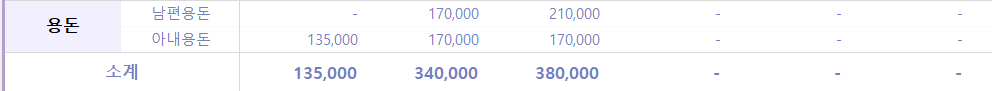 가족과 친구들을 위해서 쓴 경조사 비용은 1월부터 6월까지 이어지고 있다.