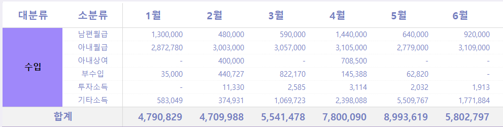 벌써 8월이고, 상반기가 끝난 지도 두 달이 다 되어간다. 시간은 좀 지났지만, 2023년 상반기 결산을 해보는 게 우리 집 가계 상황 파악에 도움이 될 것 같다는 생각에 가계부를 켰다.