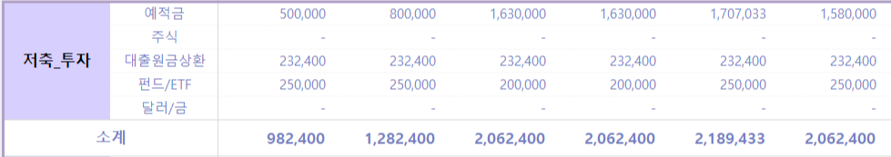 매월 꾸역꾸역 예산안에서 빡빡하게 생활할 때는 힘이 들기도 하고, 항상 돈이 부족한 것만 같은 느낌이지만 이렇게 멀리서 보니 매월 우리 집 자산은 늘어나고 있었다.