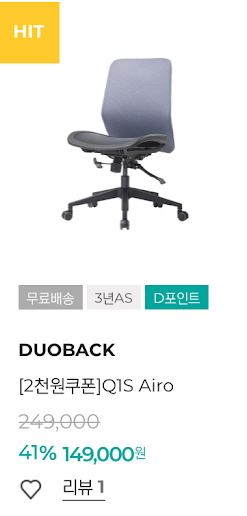 인터넷에서 판매하는 듀오백 Q1S Airo 모델을 실제로 보고 싶어서 듀오백 매장에 갔는데, "그 모델은 인터넷에서만 판매되는 모델이라서 매장에는 없고요~" 라는 이야기를 들었다. 인터넷 독점판매제품과 매장제품이 따로 구분되는지는 몰랐다. 인터넷에서 판매하는게 보통 좀 더 싼 이유는, 실제로 앉아보지 못하고 사기 때문인 이유도 있는 것 같다.