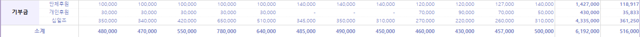 월 평균 51.6만 원을 기부금으로 지출했다.