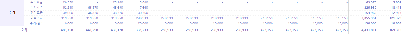 해외 이주 후 한국에서 수도요금, 도시가스, 전기요금은 낼 필요가 없어져 주거비가 거의 2배 가까이 줄었다. 그렇게 올해는 월평균 36만원의 주거비를 지출했다.