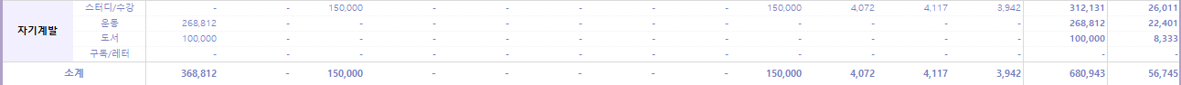 1월에 남편이 공부할 책을 10만 원어치 구입하고, 나의 발레 수업료가 지출되었다. 그러나 발레 수업은 디스크 증상으로 딱 한 달 하고 그만두었다는 슬픈 이야기...😭 뭐든지 어릴 때 해야 몸이 따라준다.