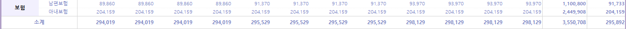 한국에서 보험료가 계속해서 빠져나가고 있다. 남편과 둘이 합쳐 월평균 29.5만 원이 보험료로 지출되고 있다.