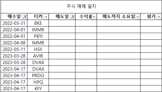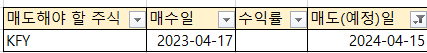 KFY는 손실이면 4월 17일 이전에 매도, 손익이면 4월 20일에 매도 한다. (혹시 모르니 마법공식 리스트에 있는지 확인 한 번 해보자)