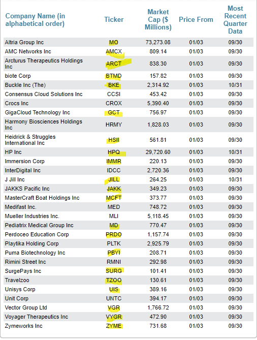 2024.01.04. 현재 보유하고 있는 마법공식 리스트 내 주식