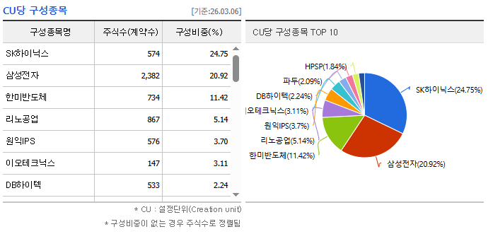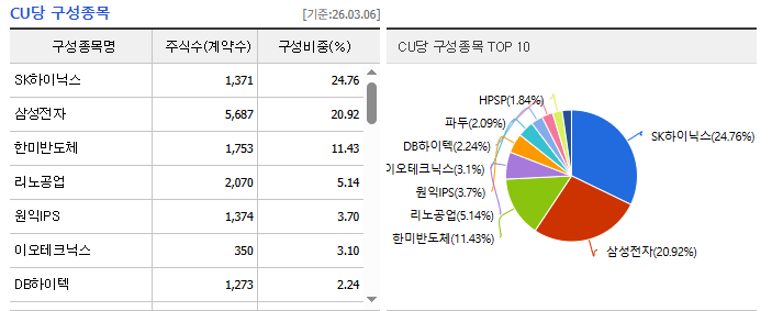 위의 CU당 구성종목을 보면 알 수 있다시피, TIGER 반도체와는 사뭇 다른 포트폴리오입니다.