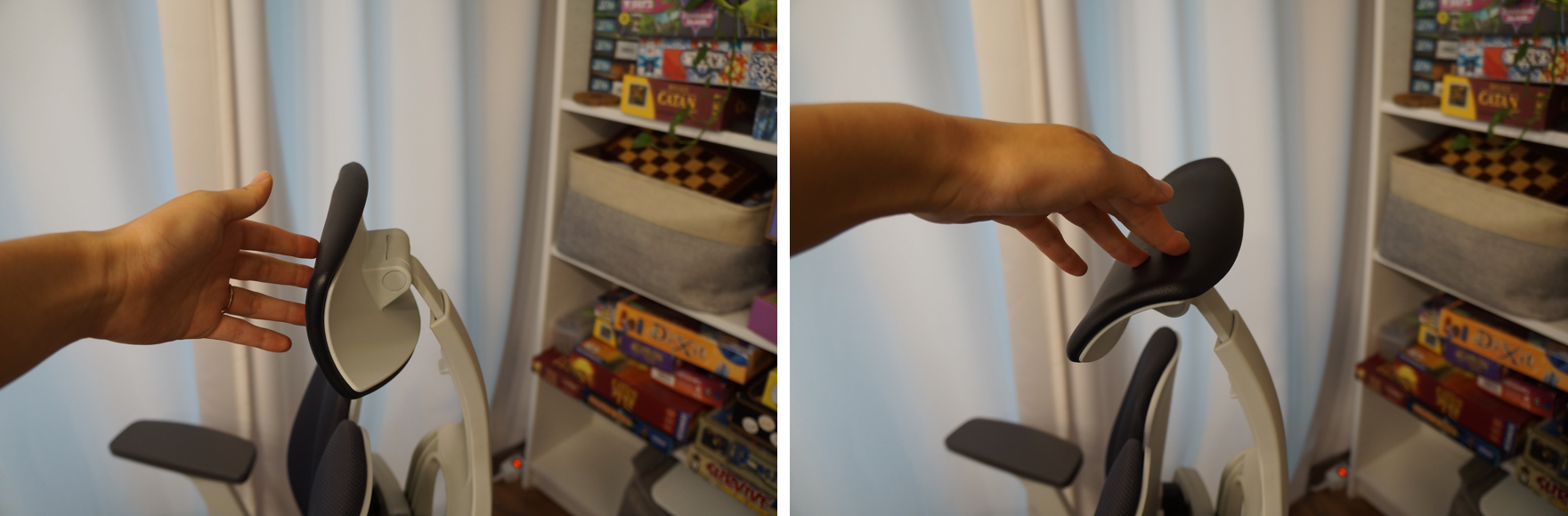 높낮이가 조절이 가능하고 목 받침을 앞으로 숙일 수도, 뒤로 젖힐수도 있다.