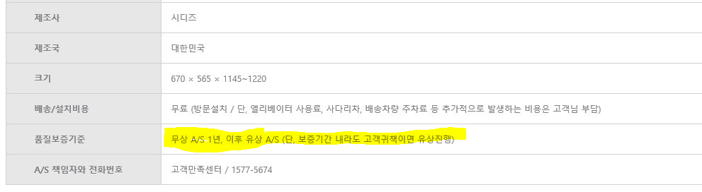AS기간이 3년인 듀오백에 비해, 시디즈의 AS기간은 1년으로 꽤 짧은 편이다. 1년이 지나고서도 유상으로 서비스나 수리는 가능하지만, 소비자 입장에서는 신경 쓰지 않을 수가 없는 부분이다. 직접 앉아보니 내구성이 조금 걱정이 되었는데 AS도 1년이라니까 구입이 좀 더 망설여지는 부분이었다.