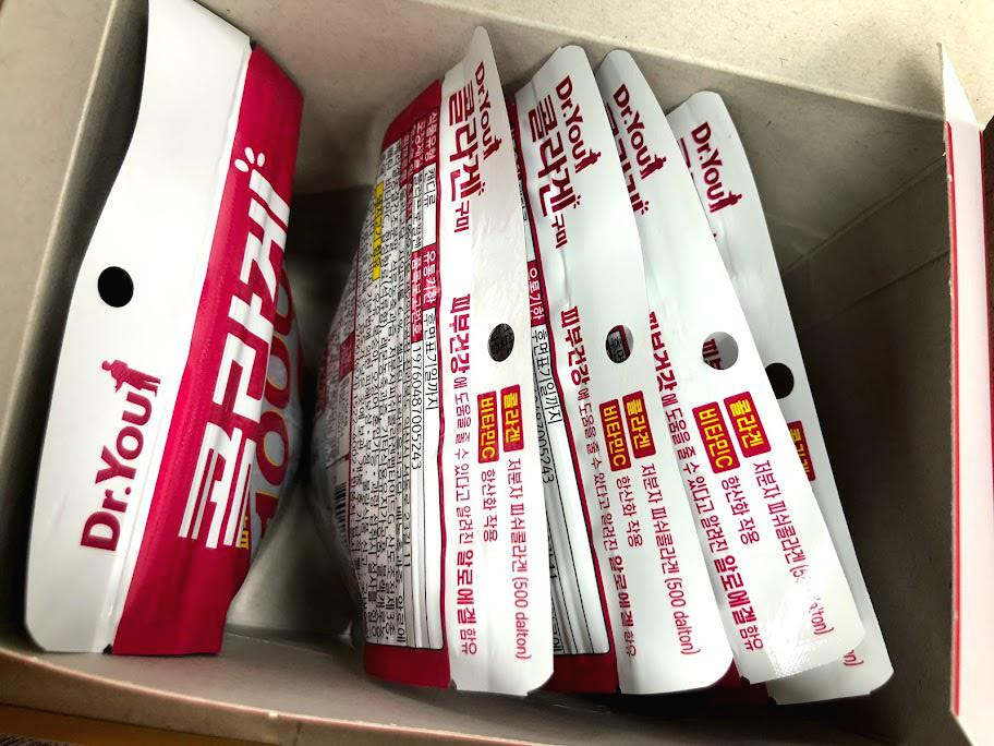 콜라겐 구미 박스를 여니 이렇게 젤리 봉지 5개가 들어있다.