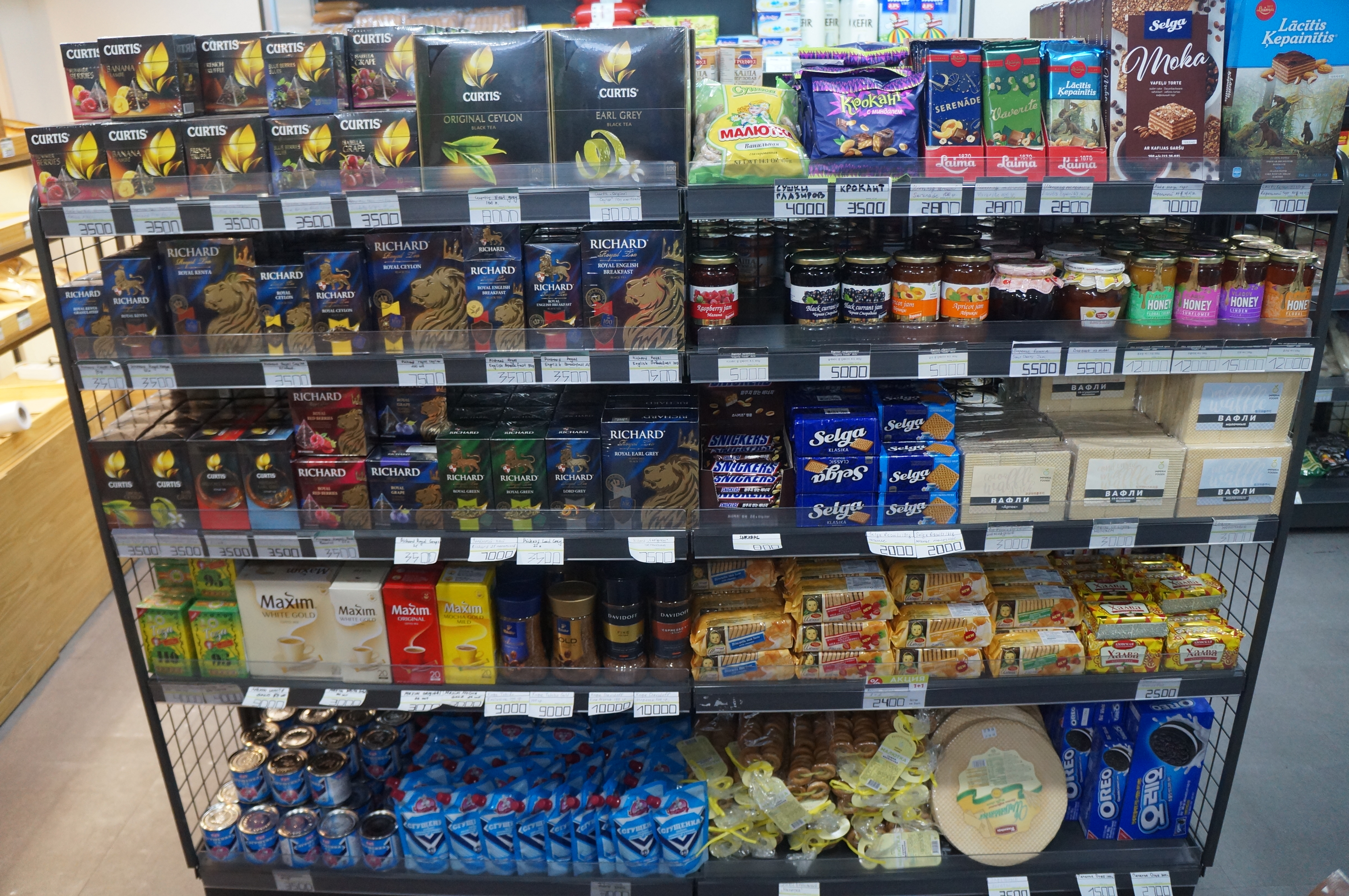 러시아 주전부리 간식들과, 차(tea), 빵에 발라먹는 잼, 비스킷, 초콜릿 등도 판매되고 있습니다. 하나같이 너무 먹어보고 싶은 것들이에요.
