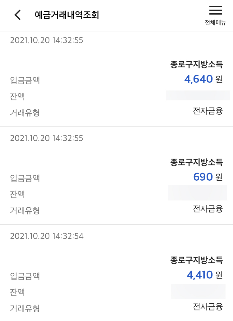 이미 다 끝난 줄 알았던 세금 환급금이 또 들어왔다. 총 3번에 나누어서 자잘한 돈이 입금되었다.